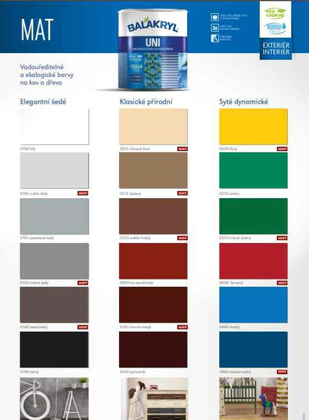 Vodou ředitelná vrchní barva s univerzálním použitím určená k novým i renovačním vrchním nátěrům kovu, dřeva, betonu, omítek a dalších materiálů v interiéru i exteriéru. Nátěr poskytuje povrchu účinnou ochranu a hladký matný vzhled v široké škále atraktivních barevných odstínů.